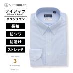 【スーツスクエア】メンズ ワイシャツ 長袖 ノーアイロン ジャージー ボタンダウンカラー FIT ドレスシャツ サックスブルー
