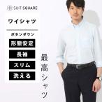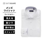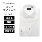 【スーツスクエア】メンズ 最高シャツ ワイシャツ 長袖 ノンアイロンジャージー ワイドカラー FIT ドレスシャツ ホワイト系