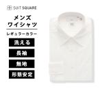 【スーツスクエア】ワイシャツ メンズ 長袖 形態安定 RENU レギュラーカラー 無地 スリム 細身体 ホワイト オールシーズン シワになりにくい ビジネス