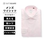 【スーツスクエア】メンズ ワイシャツ 長袖 ノンアイロンストレッチ 3BLOCK ワイドカラー BASIC ドレスシャツ ピンク