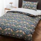 西川 掛け布団カバー シングル 綿100% モリスギャラリー いちご泥棒 着脱簡単なクイックスナップ リバーシブル 洗える 日本製 ネイビー