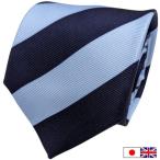 英国ADAMLEY(アダムリー)生地使用/京都産 プリントネクタイ 濃紺×ライトブルー ストライプ 絹100% 日本縫製 KV-ADM20