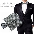 西陣織 蝶ネクタイ ポケットチーフ セット メンズ 黒 ブラック 結婚式 フォーマル パーティー シルク 日本製 ラメ 2枚重ね 簡単装着 首周り 調整可能 dplus arts
