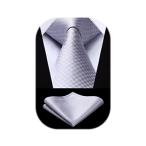 [HISDERN] フォーマル シルバー ネクタイ チーフ セット メンズ 結婚式 柄 シルク ブランド 紳士 礼服用 ビジネス 入学式 卒業式 プレゼント 高級HC-