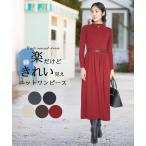 ニットワンピース 40代 50代 ロング 秋冬 おしゃれ コーデ ベルト 黒 赤 長袖 きれいめ カジュアル