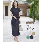 リネン 麻 ワンピース レディース 夏 きれいめ ロング 白 半袖 グリーン 緑 春 スタイルアップ 50代