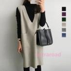 ジャンパースカート レディース 40代 ロングワンピース ジャンスカ Vネック ロング丈 ベストワンピース ノースリーブ 体型カバー 春ワンピース 通勤 OL おしゃれ