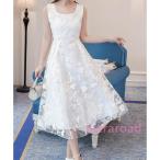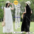 ワンピース レディース レースワンピース ロングワンピース ノースリーブワンピース 白 黒 Aライン スリット お洒落エレガント上品大人リゾート旅行 夏