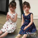 ワンピース 子ども服 キッズ ジュニア 女の子 ノースリーブ バックリボン ラウンドネック 花柄 フルーツ柄 サクランボ ひざ丈 可愛い カジュアル 夏