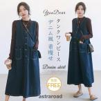 デニムジャンパースカート ロング デニムワンピース レディース ノースリーブワンピース 丸首 Aライン 春 夏 秋 ゆったり 着痩せ カジュアルワンピース コーデ