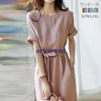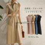 シャツワンピース レディース 半袖 ロング丈 スタンダードカラー ベルト付き きれいめ 春 夏 フォーマル 大人 通勤 オフィス ゆったり 体型カバー
