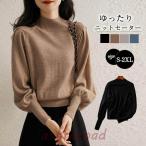 ニットセーター ニットトップス レディース 秋冬 40代 長袖トップス パフスリーブ 無地ニットインナー ニットソー プルオーバー ゆったり 大人 オシャレ