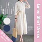 ワンピース スカート シャツワンピース 長袖 綿麻 上品 きれいめ レディース シンプル リゾート 涼しい 可愛い ミモレ丈 リネン リボン 春夏