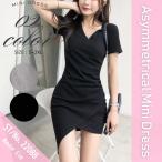 ワンピース ミニ丈 半袖 ミニワンピース カシュクール タイト 夏 レディース 韓国ファッション シンプル セクシー アシメ 黒 グレー かわいい
