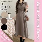 ワンピース フレアワンピース 長袖 シャツワンピ Aライン ロング レディース 韓国ファッション きれいめ オフィス 通勤 上品 ウエストマーク