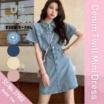 デニムワンピース ワンピース ツイル 半袖 ミニワンピ スカート レディース 韓国ファッション ひざ上 大きいサイズ フェス 衣装 お揃い イベント