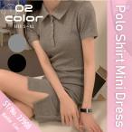 ワンピース ミニワンピ ミニ ポロシャツ タイト スカート 春夏 レディース 韓国ファッション スリット シンプル モノトーン かわいい セクシー