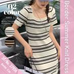 ワンピース ミディ丈 半袖 ボーダー きれいめ 大人 シンプル レディース キレカジ かわいい モノトーン ニット サマーニット 韓国ファッション