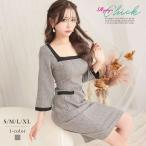キャバドレス キャバ キャバクラ 袖あり 長袖 ミニドレス ワンピース パーティードレス チェック柄 RyuyuChick 二の腕 大きいサイズ