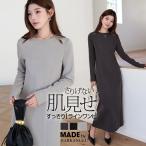 カットアウト Iライン ワンピース ロングワンピース マキシワンピース レディース 長袖 無地 きれいめ 細見え バックスリット 大人カジュアル スムースコットン