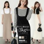 着るだけ脚長見え ジャンパースカート ワンピース レディース ロングワンピース ジャンスカ キャミワンピース ダンボールニット スクエアネック Iライン