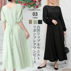 リネン風半袖ワンピース きれいめ ロング レディース リネン風 二の腕カバー 体型カバー 50代 40代 30代 お洒落 可愛い 黒 半袖 体型カバー ダークエンジェル