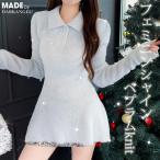 ラメチュニック ペプラムニット ラメ入り ペプラム トップス ニット レディース タイトシルエットでスタイルアップ ダークエンジェル 冬新作