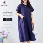 【送料無料】半袖コットンWポケットワンピース◆レディース ワンピース ロング丈 綿 コットン ロングワンピース 丸首 半袖 ポケット付き
