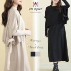 ニットベスト×フレアワンピース◆レディース セット ニット ベスト トップス リボン フレア ワンピース ロング 長袖 無地 プルオーバー 秋 冬 春