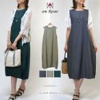レディース ジャンパースカート ジャンスカ ワンピース Vネック ノースリーブ フレア 体型カバー パールモチーフ Vネック ロング ミディアム