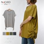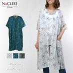 【メール便送料無料】サイドドロストプリントチュニック◆レディース チュニック 綿100% コットン プリント ドルマン ワンピース 大きいサイズ リボン 半袖◆