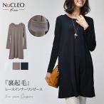 【メール便送料無料】裏起毛レースインナーワンピース◆レディース ワンピース インナー 花柄 長袖 トップス チュニック 大人 上品 クルーネック 無地◆