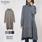 【セール】イレギュラーヘムリブニットワンピース◆レディース ワンピ リブ編み 長袖 ポケット付き 防寒 秋 冬 春 ニットワンピ タートルネック 小顔◆