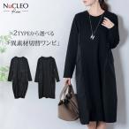 異素材切替デザインワンピース レディース ワンピ 異素材 切替 黒 長袖 大人 ポケット付き ロング丈 コットン バルーン