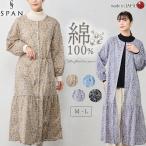 日本製 綿100 花柄ギャザーワンピース 長袖 ラウンドネック ポケット レディース 花柄 綿100 綿 コットン オーバーサイズ 快適 羽織 重ね着 ウエストリボン