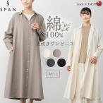 日本製 東炊き コットンビエラ シャツワンピース 綿100% レディース シンプル ロングワンピース Aライン フレア 長袖 ボタン 無地 羽織 大きいサイズ ゆったり