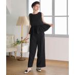 セットアップ 「BONLECILL noir」ショルダーリボンペプラムノースリーブプルオーバー&センタープレススラックスSET UP レディース