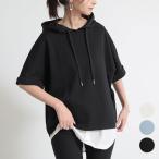パーカー レディース 春 半袖 夏 体型カバー 白 黒 トップス 50代 40代 30代 20代 上品 トレーナー スウェット 薄手 無地 フード おしゃれ