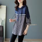 シャツ パーカー フード付き 長袖 ストライプシャツ カジュアル フード付きシャツ レディース 切り替えパーカー チュニック ドッキングシャツ 通勤
