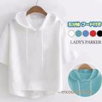 パーカー レディース tシャツ 五分袖 フード付き ゆったりパーカー 半袖パーカー Tシャツ カットソー ス プルオーバー