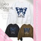 スウェット トップス 裏起毛 トレーナー チョウ 蝶 バタフライ レディース 韓国ファッション アップリケ デニム ミディ丈 秋冬 カジュアル 白
