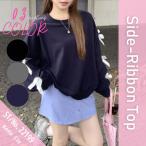 スウェット 長袖 トップス 袖リボン トレーナー ショート丈 短丈 レディース 韓国ファッション カジュアル フェミニン ガーリー 無地 可愛い 秋