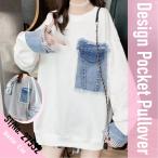 デニム ポケット フェイクレイヤード プルオーバー スウェット オーバーサイズ カジュアル 韓国 ストリート ギャル ロンT デニムポケット 大人