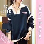 トレーナー スウェット 長袖 ハーフジップ バイカラー 襟付き レディース 韓国ファッション トップス ハンサム ドロップショルダー 大きいサイズ