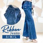 バックリボンデニムパンツ 通販 バックリボン デニム ジーンズ ジーパン ロングパンツ 美脚 パンツ 長ズボン ボトムス 春 夏 秋 冬 バックリボンデニムパンツ