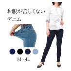お腹が苦しくならない デニムパンツ レディース ウエストゴム 春 スキニー 綿73% スリム ハイウエスト ジーンズ