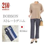 BOBSON 210 ストレート デニム パンツ レディース ボブソン 新品 日本製 ジーンズ ジーパン ウエストゴム ストレッチ 細見せ ロング丈 細く見える