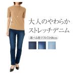 大人の デニム レディース ストレッチ デニムストレート 春 綿73% デニムパンツ ハイウエスト レギンスパンツ 股上深め ゆったりデニム ズボン ジーパン