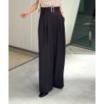 スラックス パンツ ベルト付きタックワイドスラックス レディース