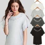 レースが可愛い リーフ 刺繍 Tシャツ フレアがキュート ナチュラル 大人可愛い T グレーT ブラックT カラーT レディース トップス 半袖 カットソー 女性用